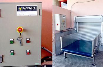 Transportador equipajes y cuadro de control.