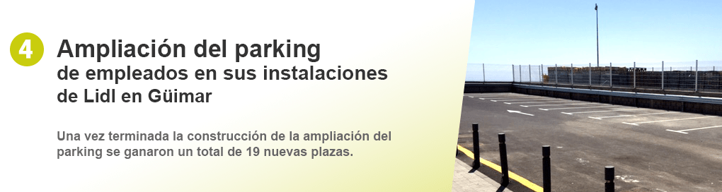 Otro de los trabajos encargados a INGENUT por nuestro cliente estuvo relacionado con la ampliación del espacio en sus instalaciones. Debido al crecimiento que está experimentando la empresa en las islas a nuestro cliente, Lidl Supermercados S.A.U, le surgió la necesidad de una ampliación del parking de empleados en sus instalaciones en Güimar. Para ello, en INGENUT, Empresa de Ingeniería Industrial en Tenerife y Canarias, sacamos la escuadra y el cartabón para calcular la mejor solución. El resultado fue el acondicionamiento de una zona perpendicular al parking en sus instalaciones, hasta ese momento infrautilizada. Una vez finalizada la ampliación del parking se ganaron un total de 19 nuevas plazas. ¡Solución al problema, ampliación de la zona y objetivo conseguido!