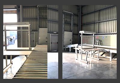 • Un transportador de rodillos de gravedad horizontal, de 1.480 x 1.070 x 550 mm.situado en el exterior justo antes de la puerta seccional instalada en la siguiente posición.