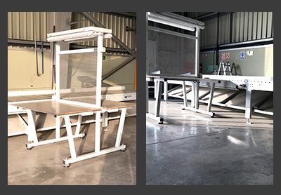 • Una mesa de trabajo interior similar a la existente en la línea de tratamiento de pantallas de tubo. La mesa tiene un puesto de trabajo por cada lado, con unas dimensiones de 1.300 x 1.000 x 920 mm.