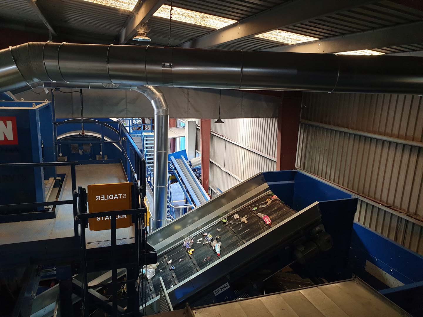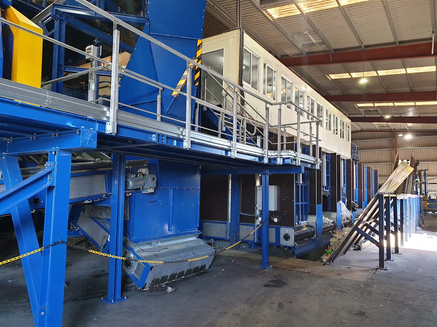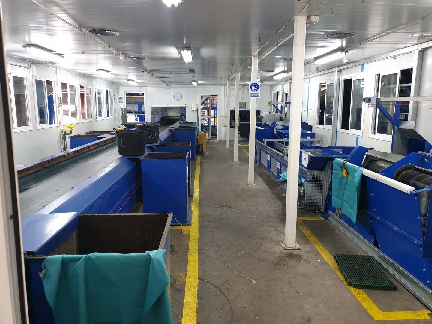 La instalación actual dispone de un diseño lineal. El flujo de materiales circula desde un extremo de la instalación, donde está el alimentador principal, pasando posteriormente a los equipos y procesos de clasificación. Hasta el otro extremo de la planta donde sale el rechazo y las balas de materiales recuperados.