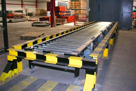Suministro e instalación de transportadores de rodillos y ascensor para el transporte de palets.
