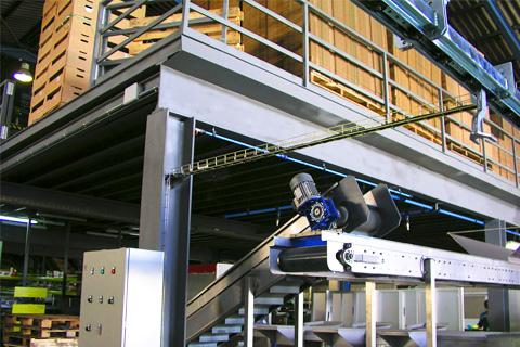 Suministro e instalación de altillo y conjunto de transportadores para cajas vacías de plátanos.